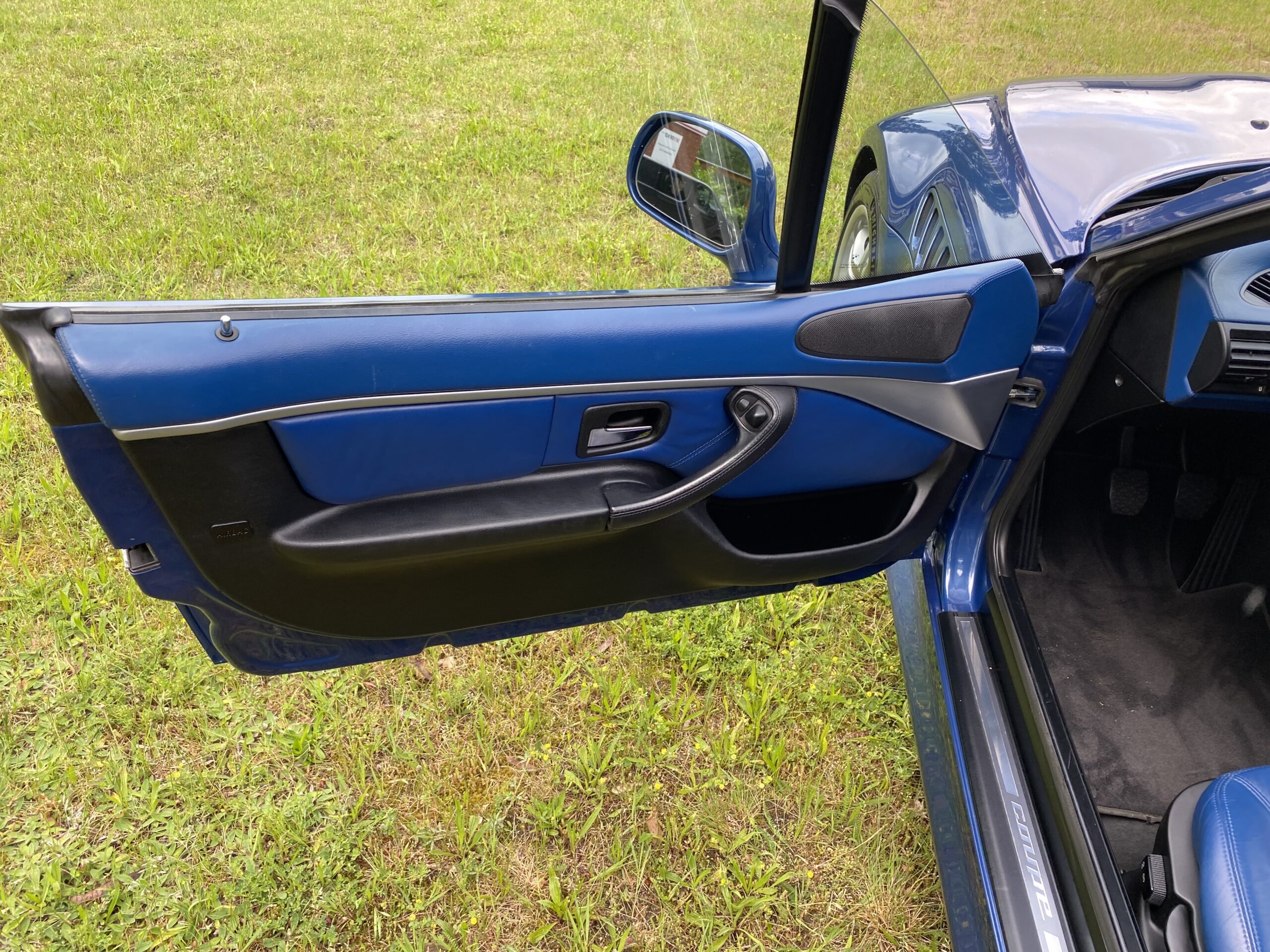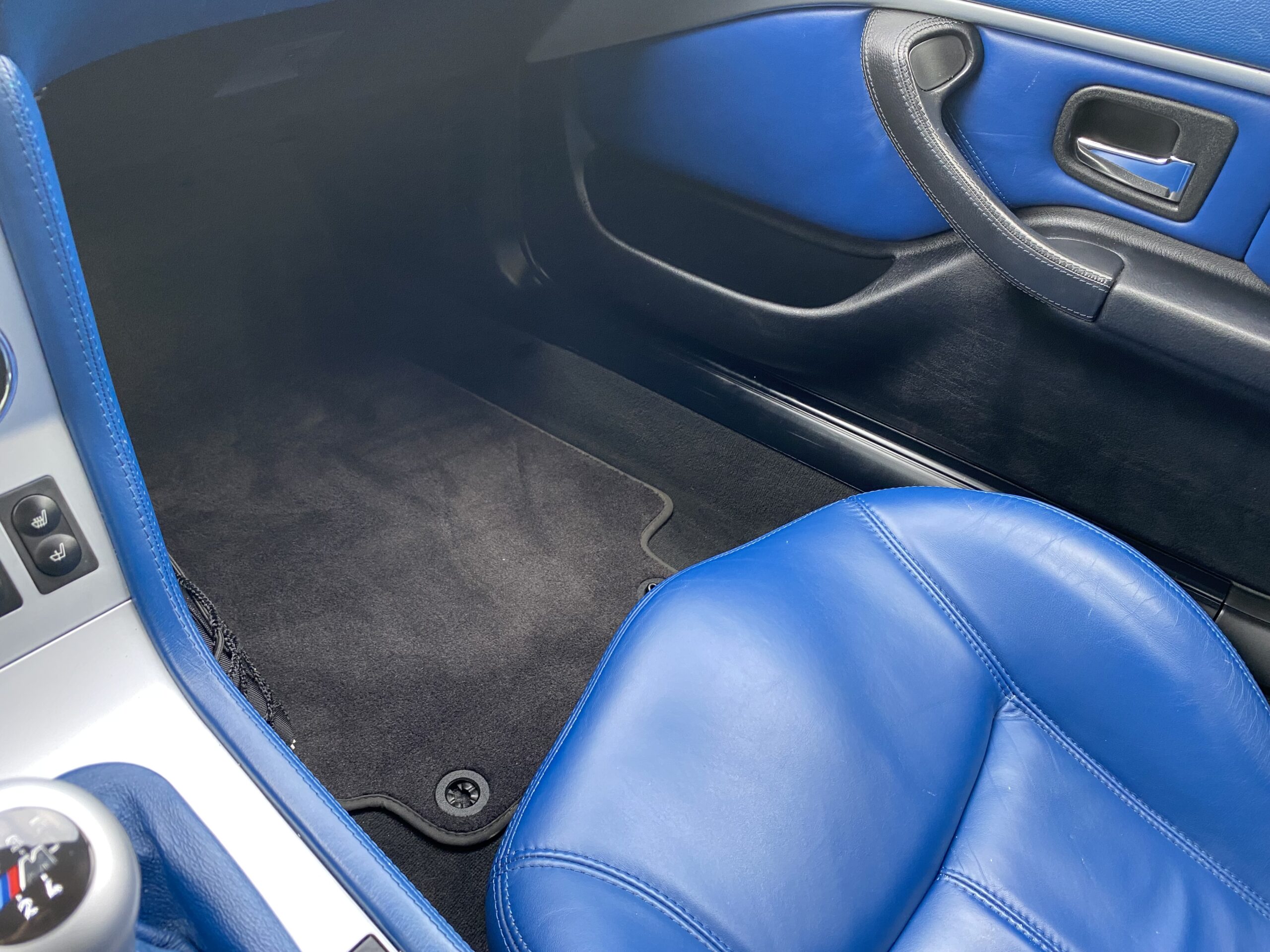 Das Interieur in Leder Oregon Schwarz/ blau ist sehr schön und gut erhalten. Der Wagen ist sehr gepflegt, der Lack ist in einem überdurchschnittlich guten Zustand.